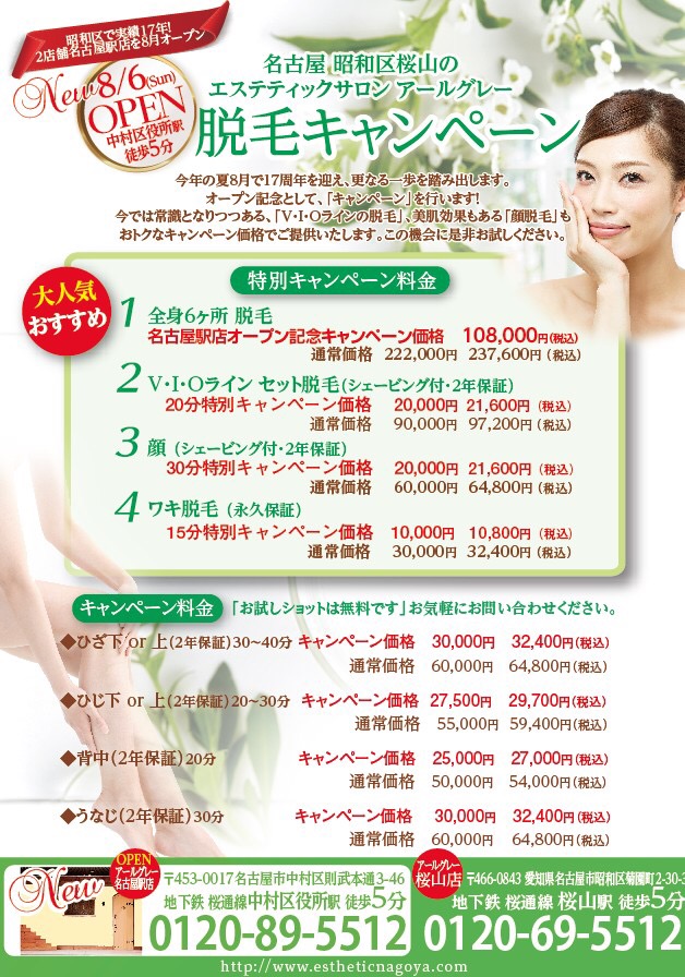 名駅店オープンに伴う脱毛キャンペーンは好評につき、継続中です!