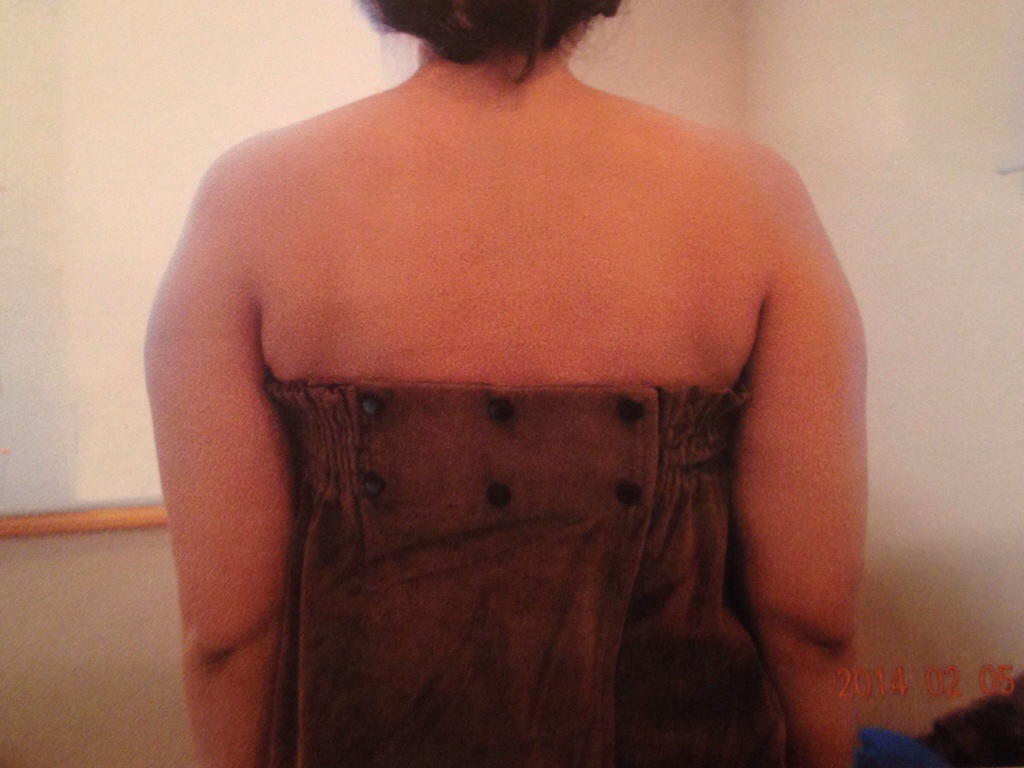 この方は2クール施術させて頂きましたが、別人のように背中と二の腕が変わりました。首も長くなった気が…。劇的に見た目が変わりました。。